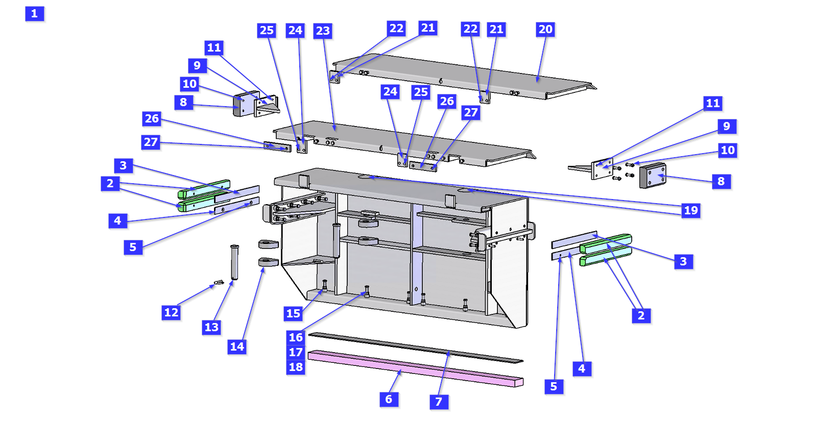 26 | | 2 Stück 108089 | | Locking piece, bottom sliding plate SPB AN FL. 40 x 10 x 185 | (Zgnr. ME00048553) | |  | | ▶ details |